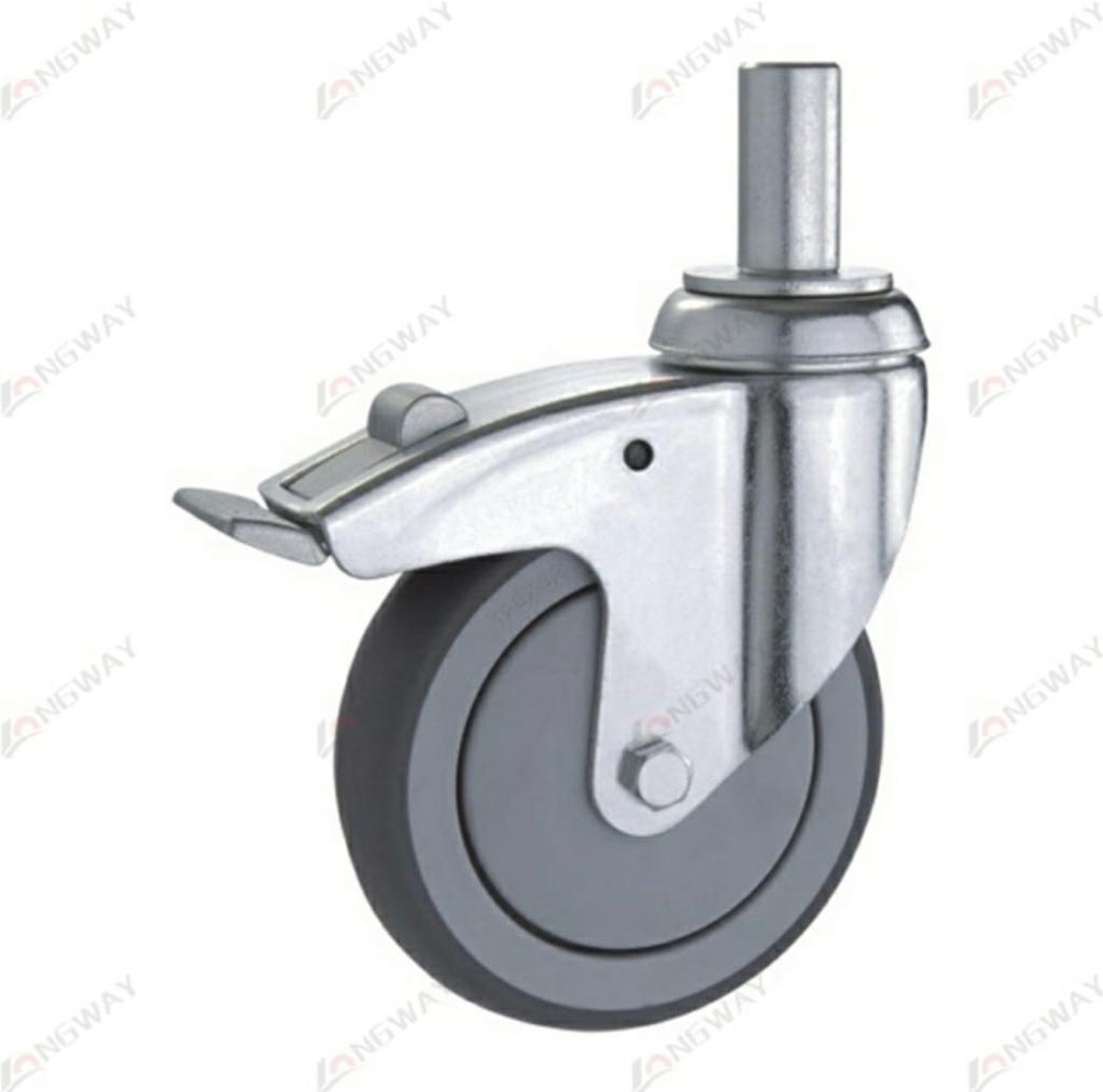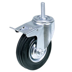 BLACK RUBBER CASTER WITH NRB THREAD TYPE BRAKE