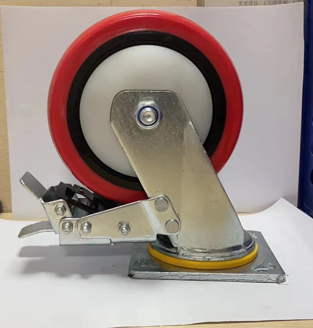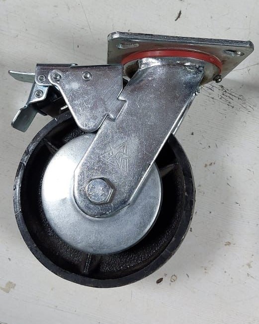 CAST IRON CASTER WITH DOUBLE BALL BEARING BRAKE