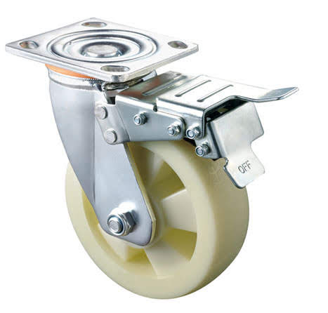 NYLON CASTER WITH DOUBLE BALL BEARING BRAKE