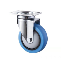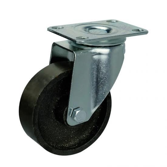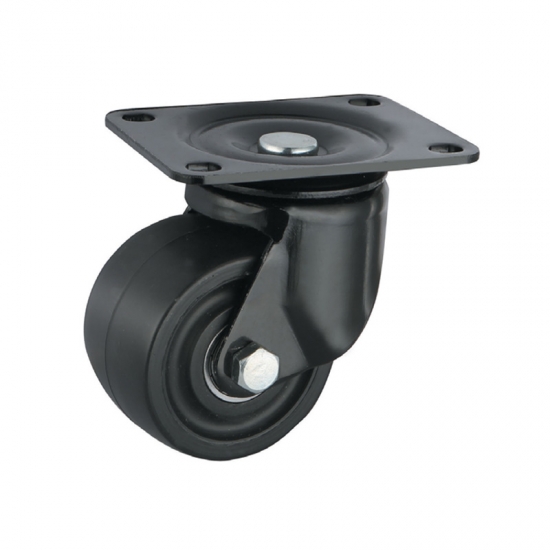 BLACK ELASTIC RUBBER CASTER WITH STEEL CORE DOUBLE BALL BEARING SWIVEL