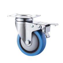 BLACK ELASTIC RUBBER CASTER WITH STEEL CORE DOUBLE BALL BEARING BRAKE